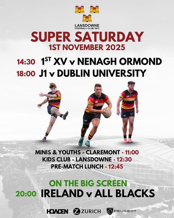 Rugby, food, family, and friends - itโs all happening Super Saturday November 1st at Lansdowne! See you there for a full day of action on and off the pitch. ๐ฉ๐ช