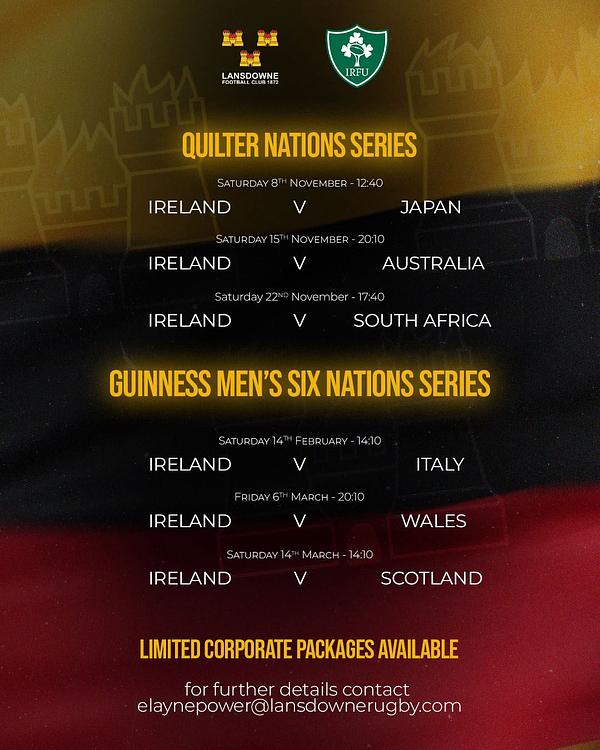 There’s nothing quite like the matchday buzz at Lansdowne, and we’ve got just a couple of corporate hospitality tables remaining for the Quilter International Series. If you’ve experienced it before, you know it’s unmissable - world-class rugby, incredible food and drink, and an atmosphere that’s second to none.