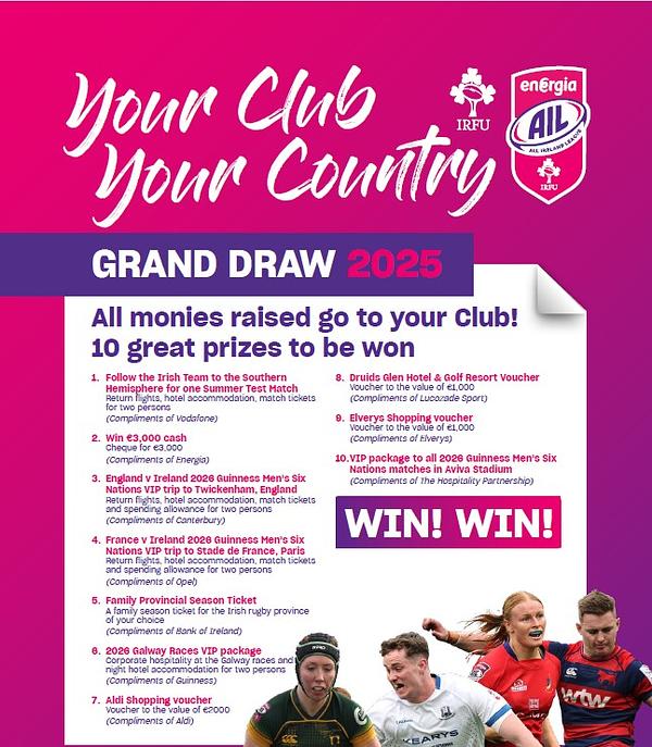 Don’t miss out on your shot at 10 incredible prizes in the IRFU & Energia Your Club, Your Country Grand Prize Draw 2025.
