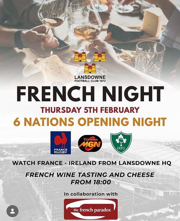 Another exciting date for your diaries. 6 Nations opening game - Thursday 5th February France v Ireland in Paris.